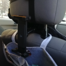 No screws, no drills, no need to remove your headrest. Our Car Tablet Holder is made of sturdy aluminum and ABS plastic for a vibration-free, reliable hold. It features rubber-reinforced clips that snap right onto the poles of your car’s front seat headrests (for no scuff marks). Plus, sponge matting on the device holder clips also ensures a scratch-free grip on your tablet or phone.