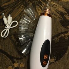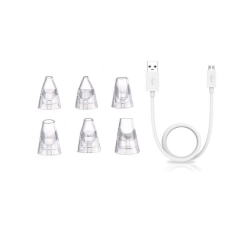 Each Electric Rechargeable Blackhead Remover is made of plastic  comes with a USB charging cable and six extra nozzle heads to treat the face and body.